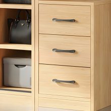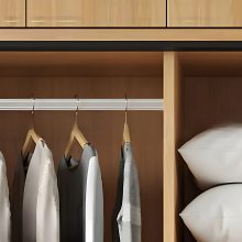 Điểm nhấn đặc biệt của tủ quần áo TAL100 chính là tay nắm cửa thiết kế âm, vừa tinh tế vừa đảm bảo sự an toàn khi sử dụng. Cửa tủ được phối thêm chi tiết màu nâu, tạo nên nét chấm phá độc đáo, làm nổi bật vẻ đẹp hiện đại và trang nhã.